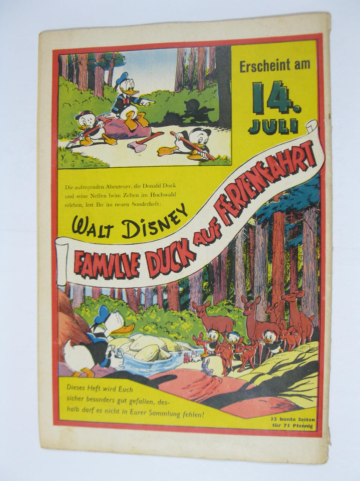 Das Heft ist im Zustand (2/2-3). Donald wurde mit Bleistift nachgezogen/durchgepaust. Falz ist unten 2 cm / oben 0,8 cm offen. Rätsel innen ausgefüllt.