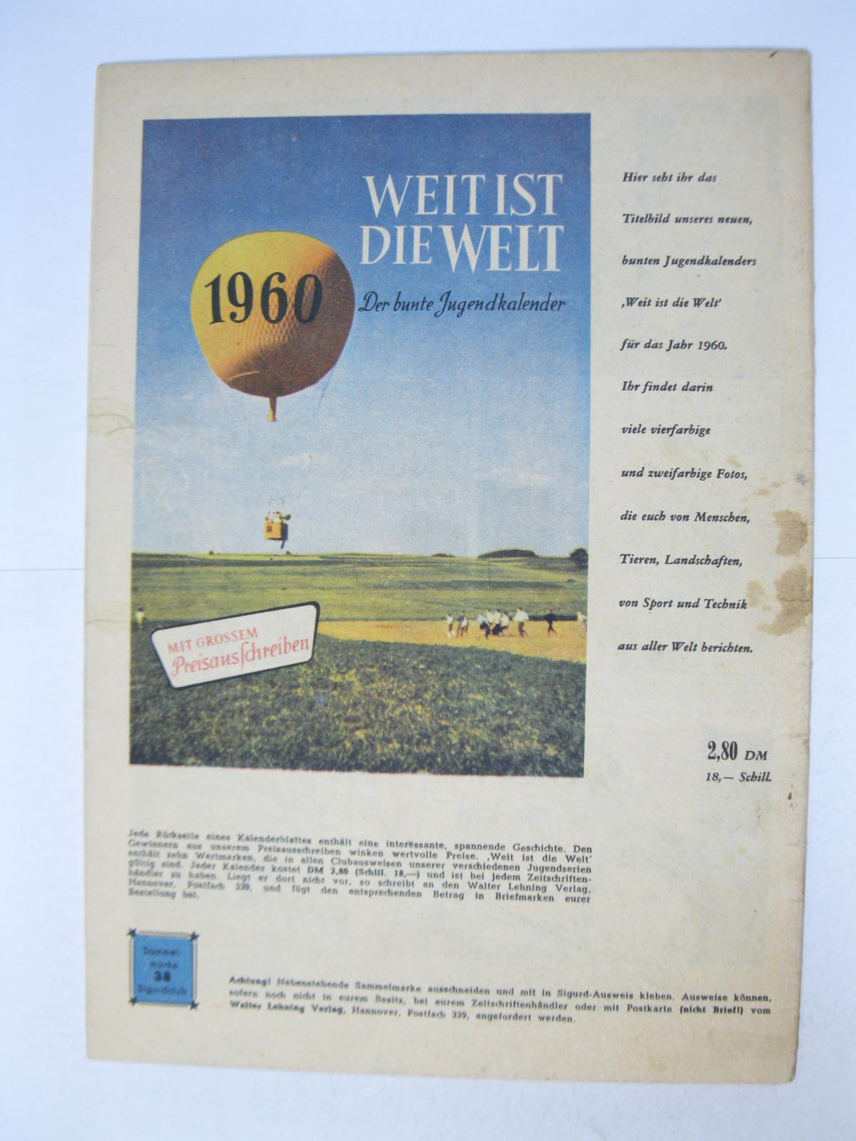 Das Heft ist im Zustand (2). kleine Einrisse auf der Rückseite, z.T. mit Flüssigkleber geschlossen. Gleiches gilt für einen Riß am unteren Falz. Zarte Bleistiftzahl am oberen Coverrand. mit Sammelmarke.