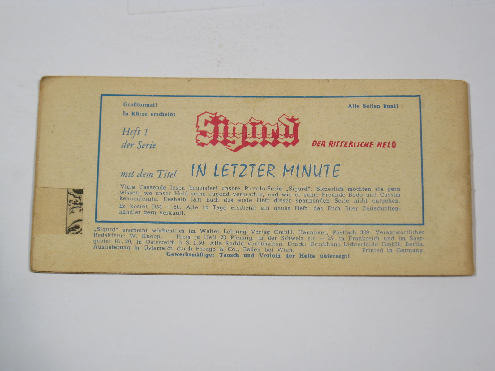 Product information "Sigurd Nr.238 Lehning Piccolo 1. Serie im Z (2 St. oS). 108077"