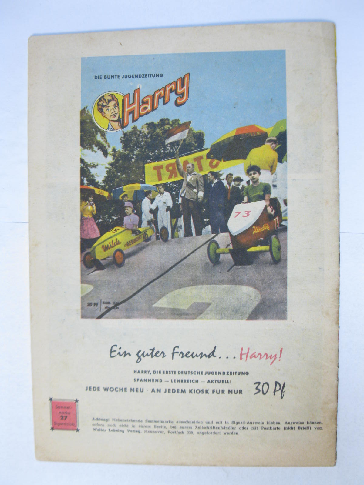 Das Heft ist im Zustand (2/2-3). Rückseite staubfleckig, 1cm Filmoplast innen am oberen Falz. Leichter Klammerrost, Mittelseite hat sich aus der unteren Klammer gelöst. Diverse Blitzer am Falz.Unauffälliger Stempel rechts vom Sigurd-Kopf. mit Sammelmarke.