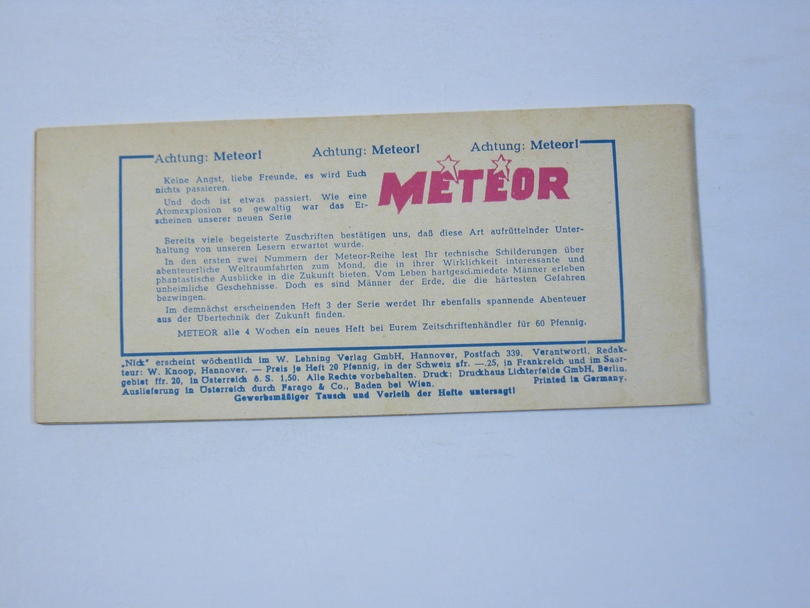 NICK Nr. 6 Lehning Piccolo im Zustand (1-2). 130069
