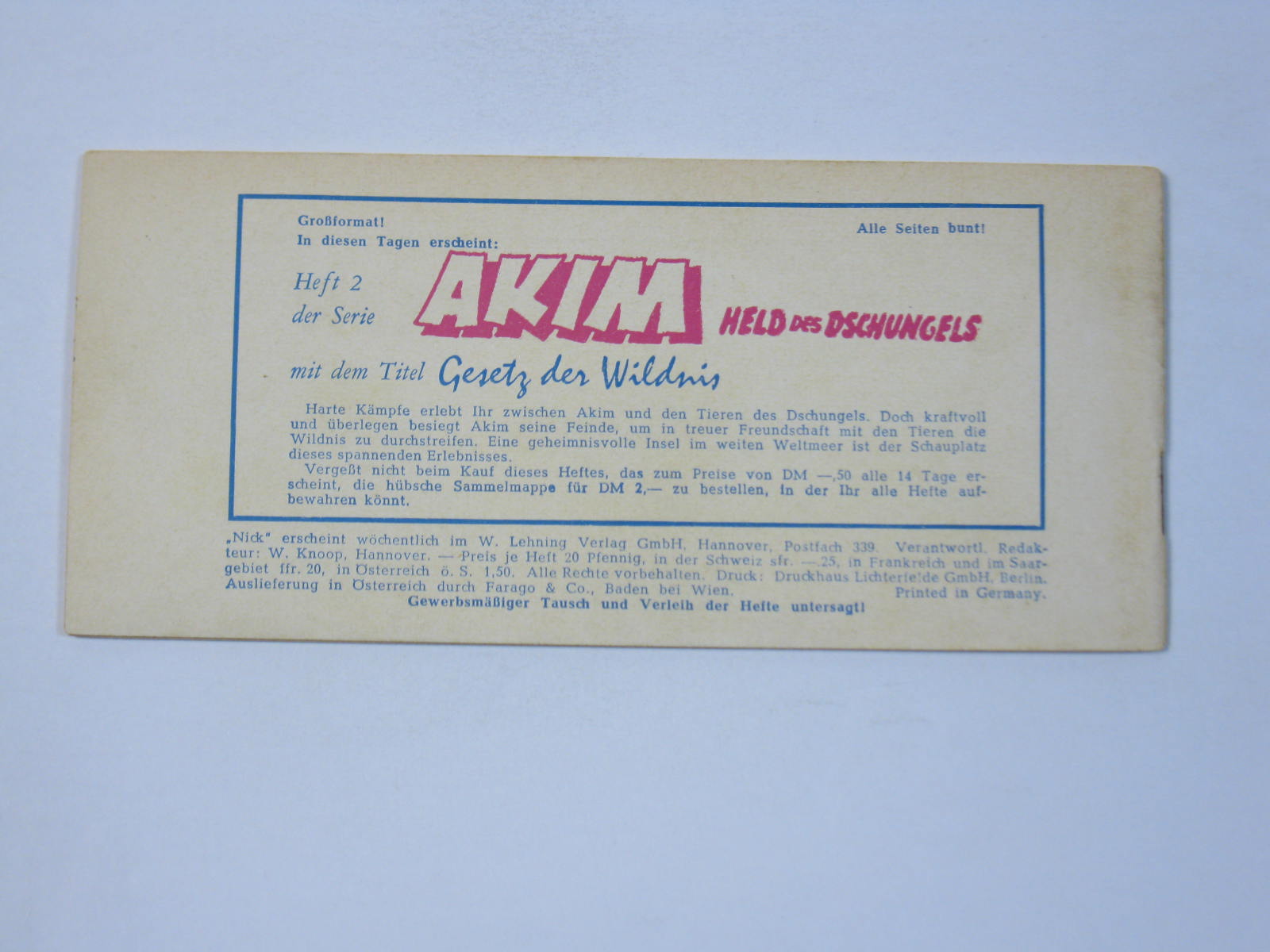 NICK Nr. 9 Lehning Piccolo im Zustand (1-2). 130071
