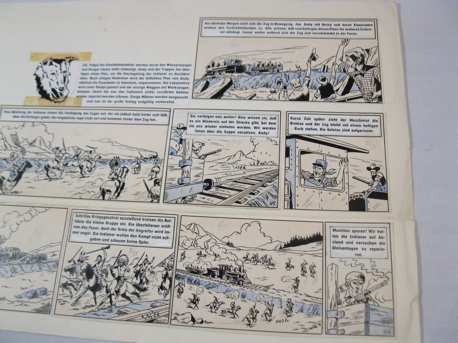 Angeboten wird hier die abgebildete Originalseite Bessy - Die Abenteuer eines Hundes (23. Folge), von dem Zeichner Karel Verschuere, Text von Willy Vandersteen. Format ca. 57 x 38 cm.