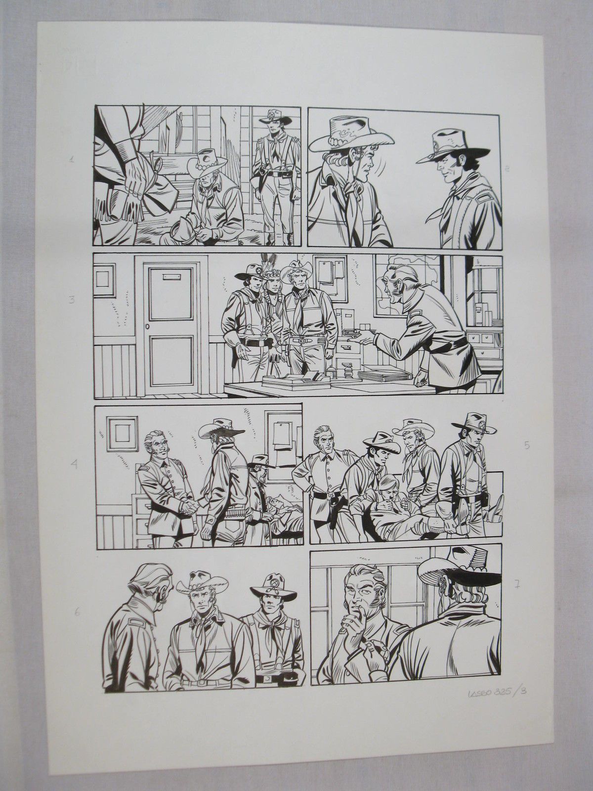 Angeboten wird hier die abgebildete Originalseite aus dem Lasso-Heft Nr. 525 ("Die Geisterkrieger von Red Rock"), Zeichner Alfio Consoli, Format ca. 50 x 35 cm.