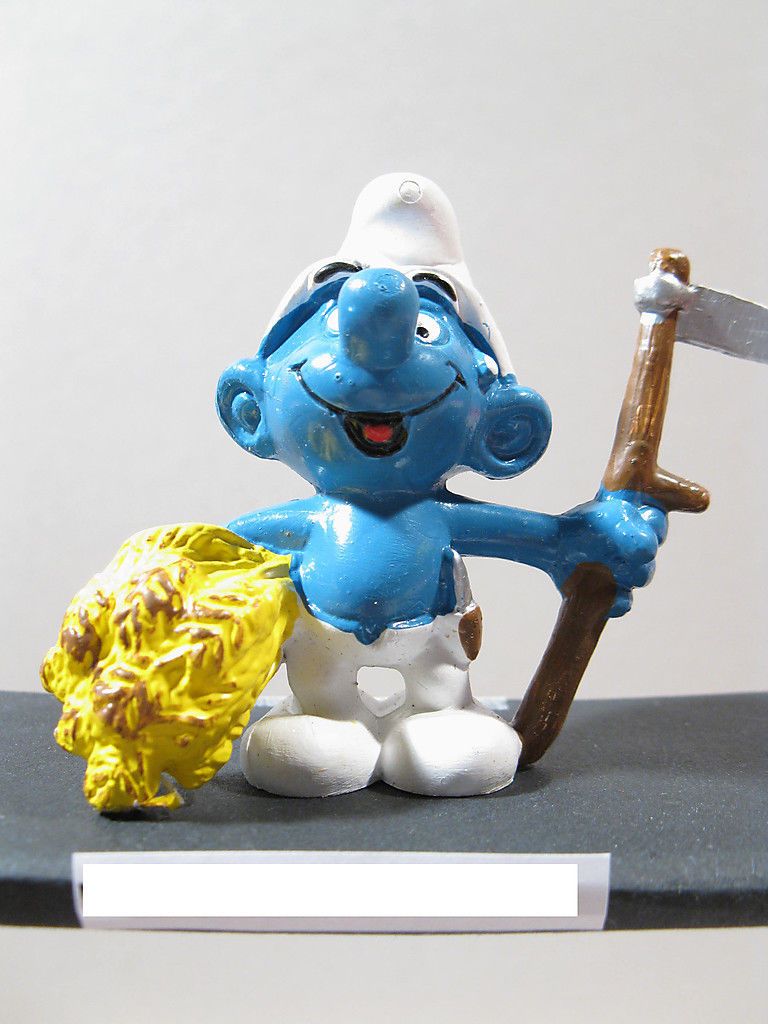Angeboten wird folgende Schlumpf-Figur, Größe ca. 5 cm: Bauer mit Sense # 150 a - brauner Stiel, hellgelbes Heu, Markung "1981 Peyo Schleich W.Germany" gebrauchter, aber sehr guter Zustand, siehe Foto used, but very good condition, see picture.