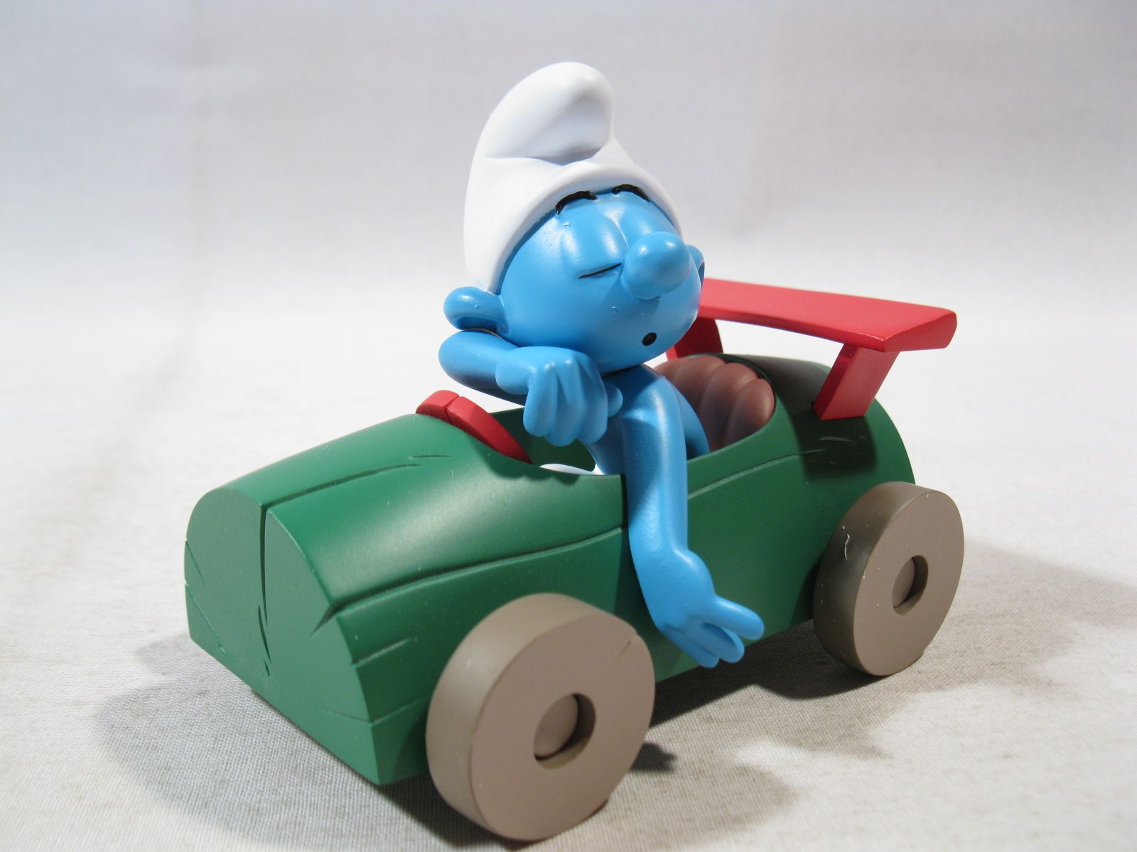 schlafender Schlumpf im Auto von der Firma Figures et Vous.
