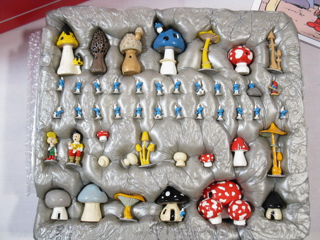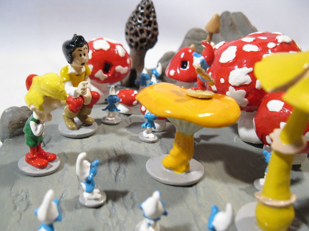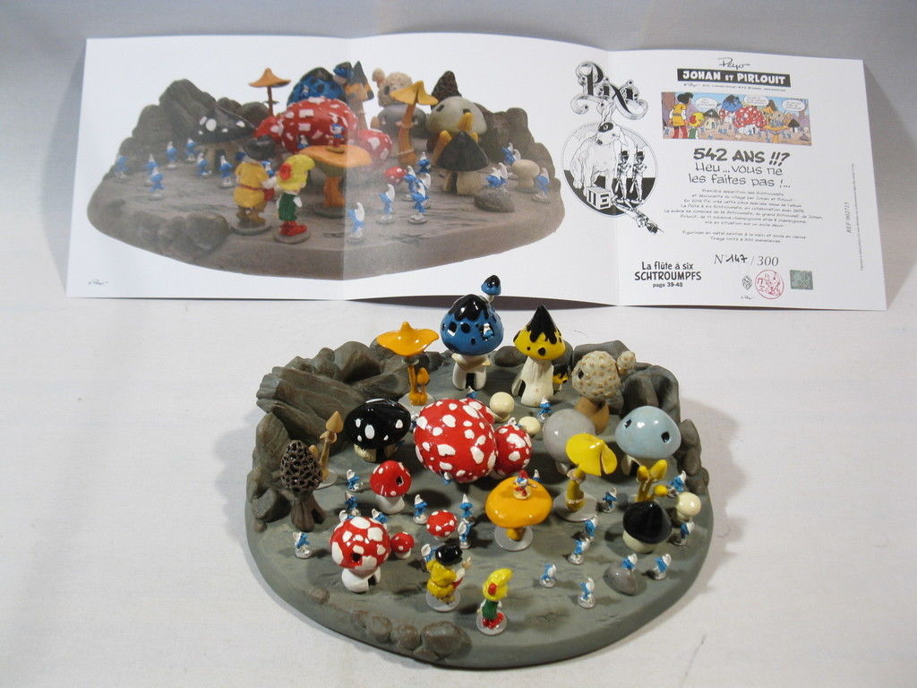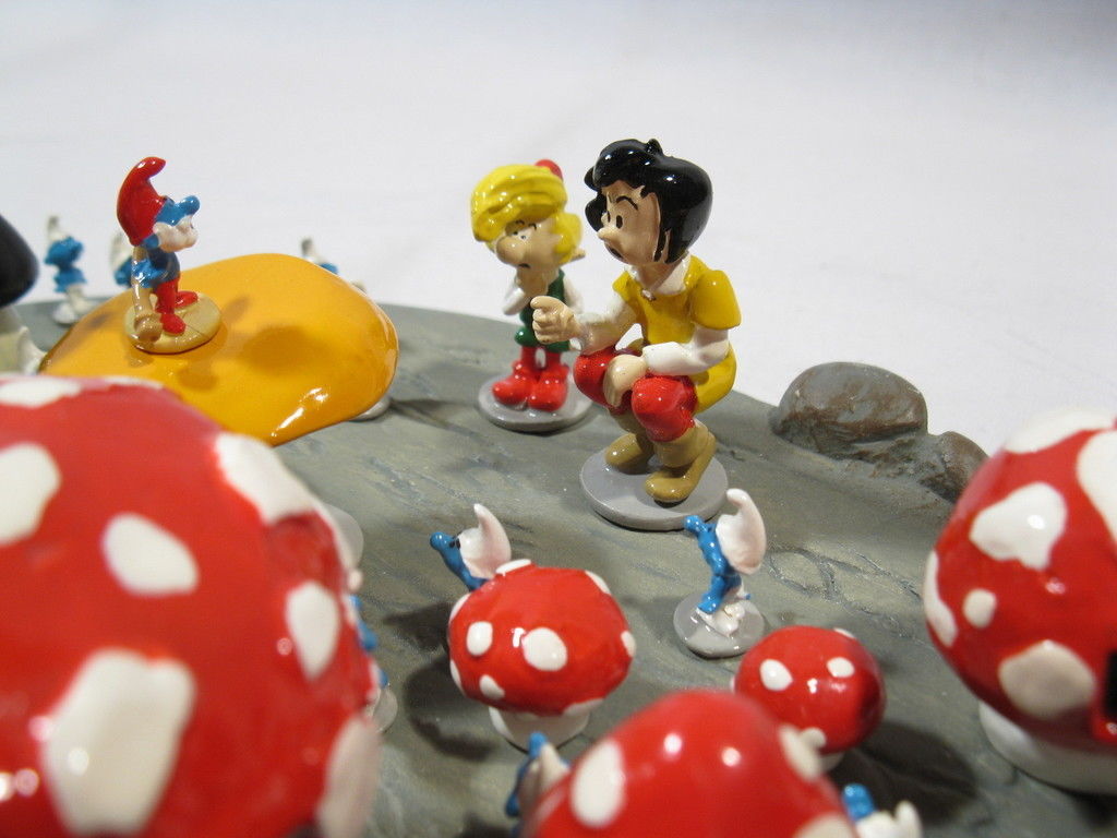Hersteller Firma Pixi, Paris, Auflage nur 300 Exemplare. Größe des Sockels ca. 28 x 23 cm, die Schlumpffiguren sind ca. 2 cm groß.