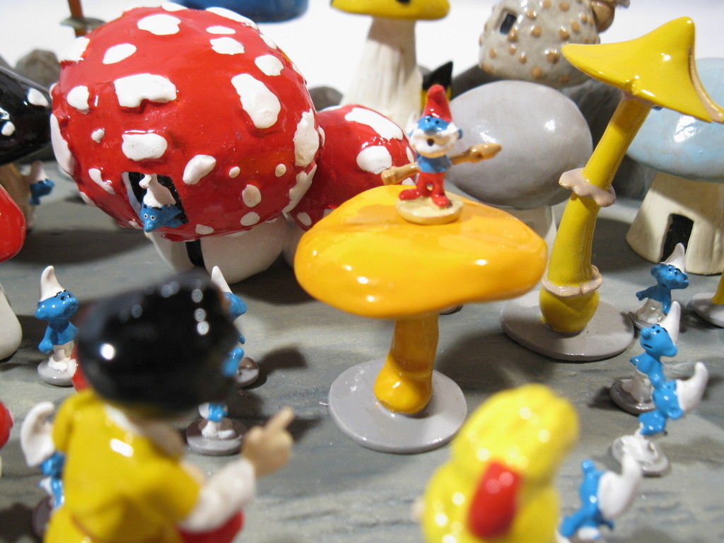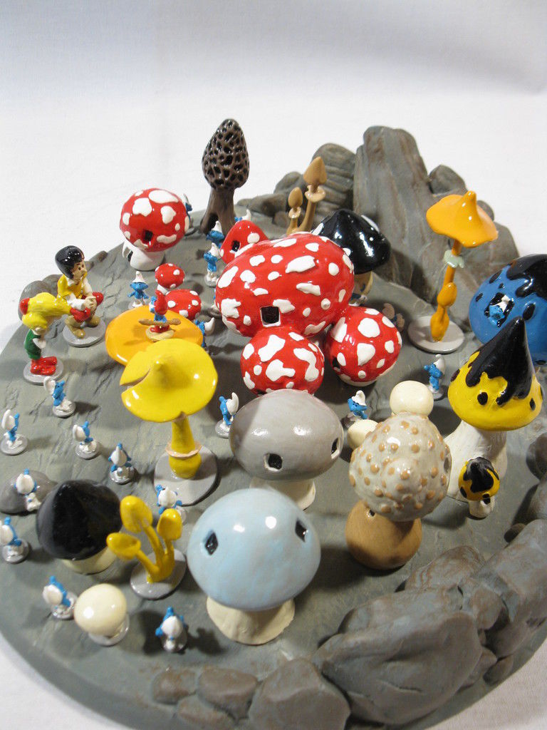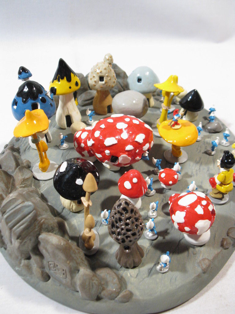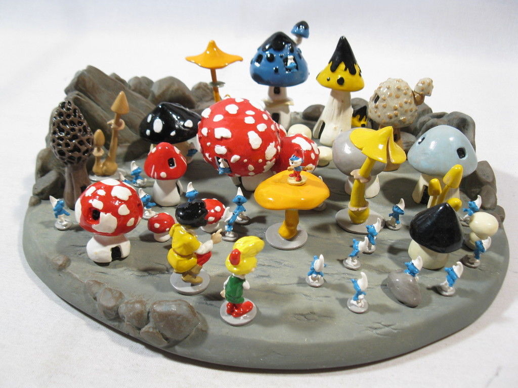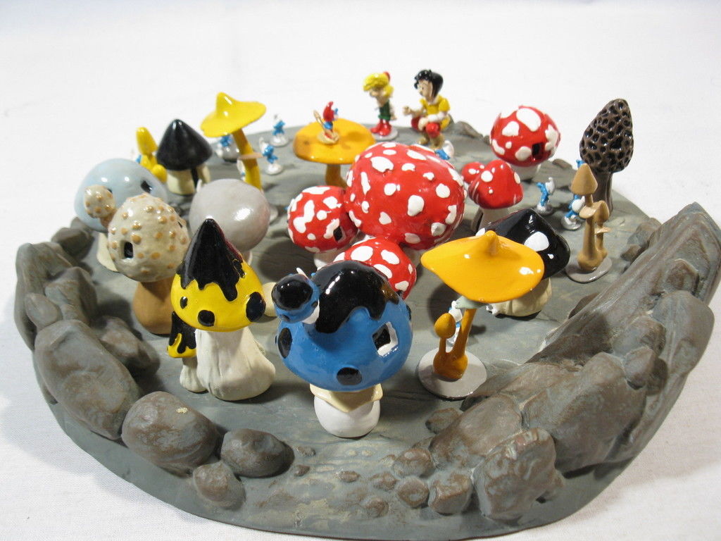 Das Ensemble besteht aus Grundplatte mit Bergmassiv, 19 Pilzhäuser sowie 26 Figuren (24 Schlümpfe sowie Johann und Pfiffikus).