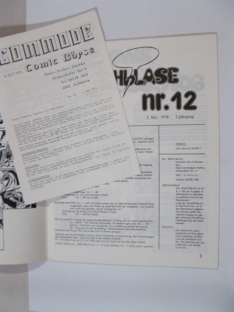 Sprechblase Nr. 12 mit BEILAGE mit Inhaltsverzeichnis Hethke Verlag 71729